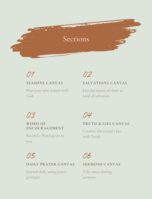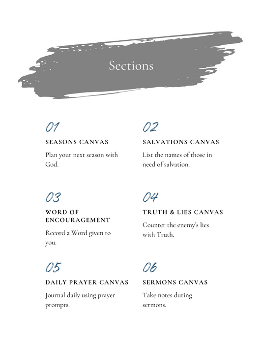 My Prayer Canvas is designed to bring structure and clarity to your prayer life, helping you connect with God on a deeper, more intentional level. Whether you're feeling spiritually stuck or simply seeking more direction in your prayers, this journal offers a practical way to organize your thoughts, and journal the promptings from the Holy Spirit.